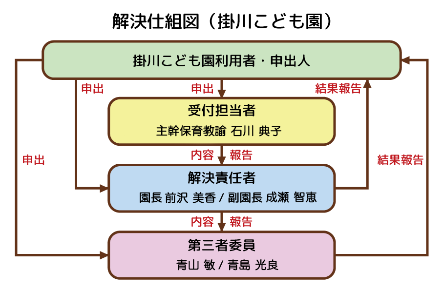 - 責任者である園長・副園長へ直接申し出ることもできます。